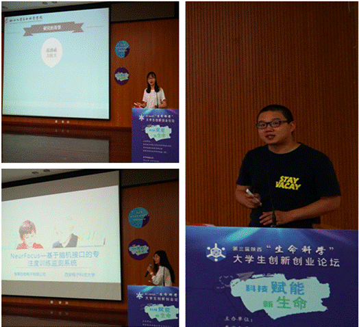 上午,beat365官方网站的“基于脑机接口的专注度训练监测系统”项目、软件学院的“基于微流控芯片技术的乳腺癌早期筛查系统”项目、西北大学生命科学学院的“基于酶联免疫吸附实验原理应用凝集素检测流感易感人群方法的研究”项目的学生代表也进行了精彩分享。