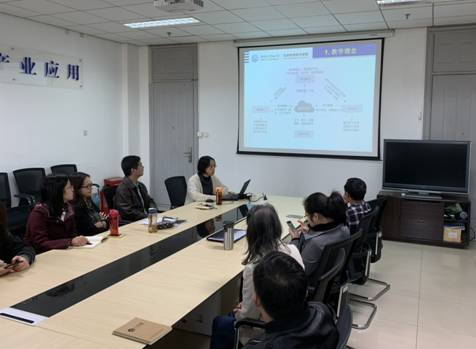 会上,先由生物技术专业负责人陈丹副教授从教学理念、教学方法和手段、教学评价三个方面向各位老师汇报了参加校青年骨干教师信息化教学能力提升培训班的所感和所得。随后,她通过雨课堂、微助教、问卷网、电子墙、课堂互动游戏等信息化技术,演示了课前、课中和课后的“三阶式”教学过程。汇报最后,陈丹副教授就如何做好教学设计、运用哪些信息技术,它们各自优势特点如何展开了热烈的讨论。