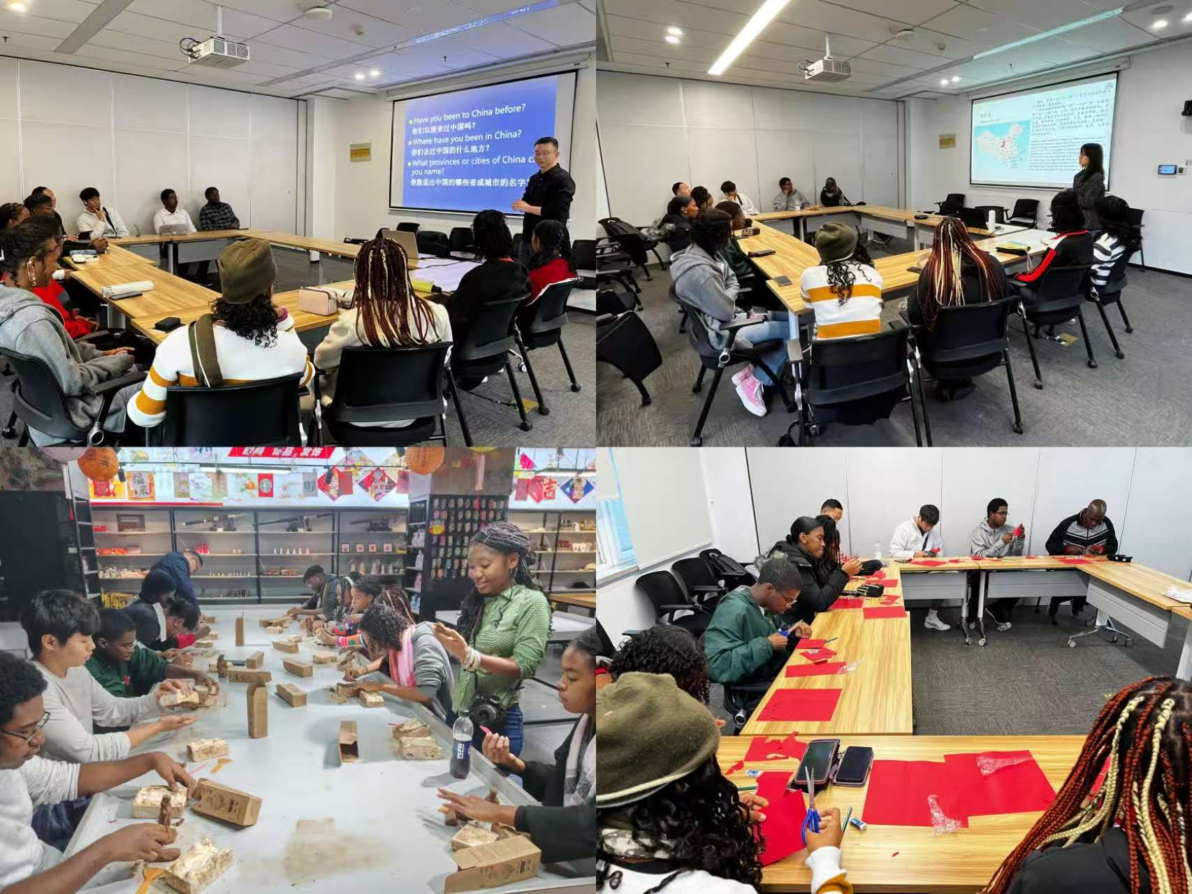 期间,研学团还参与多场文化讲座与文化体验课程。《中国国情简介》《精彩中国》《陕西历史文化与丝绸之路》讲座中,师生系统了解地域文化与国家发展;剪纸、中国结制作、兵马俑手工复刻等体验课上,大家亲手操作,感受非遗技艺的独特魅力。