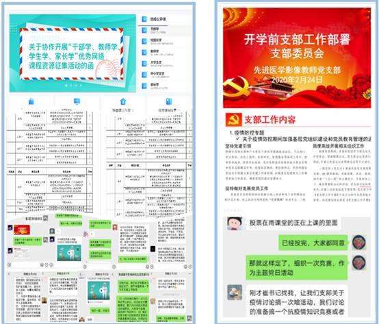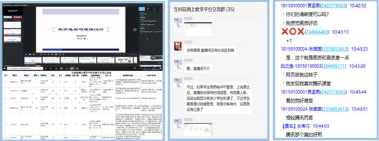 尽心尽责,全力保障教学运行。学院建立线上教学平台交流群、各系研讨群、课程师生群组,涵盖春季学期全部授课教师,方便交流沟通和寻求帮助;各任课教师通过QQ、微信等通讯软件,建立课堂群,将教材电子版、PPT等学习资料发给学生,若直播平台出现故障,可通过课堂群第一时间与学生保持联系;指导各系按课程、教学班级组织模拟课堂,测试、解决师生直播中可能遇到的疑问;全体辅导员实时关注学生上课情况,协助解决课堂出现的问题。