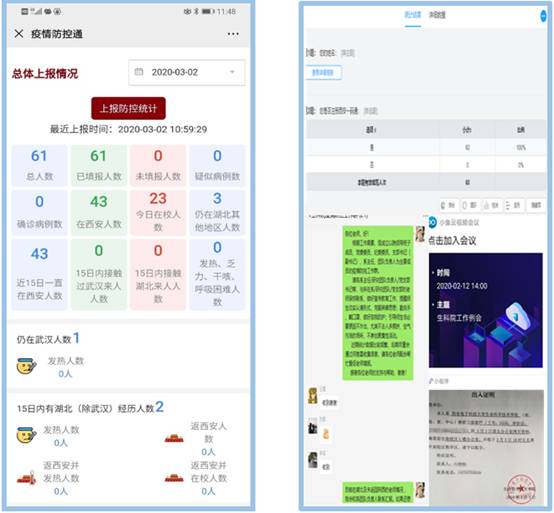 学院持续运用信息化手段,助力摸排师生信息,实施网格化管理。在疫情通填报之前,利用问卷星等统计工具第一时间掌握教职工情况;对于寒假期间从西安市外返回的教师及还没有返回西安的教师,学院一对一安排了联络人对接,并每天保持密切联系,实现教职工数据统计全覆盖,建立人员台账,根据所在地不同、行动轨迹不同分类引导,确保每日与疫情严重地区的教职工联系100%、每日疫情通填报率100%、每日与在海外的教师联系100%。
