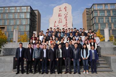 与会师生在“为人民服务”石刻前合影留念