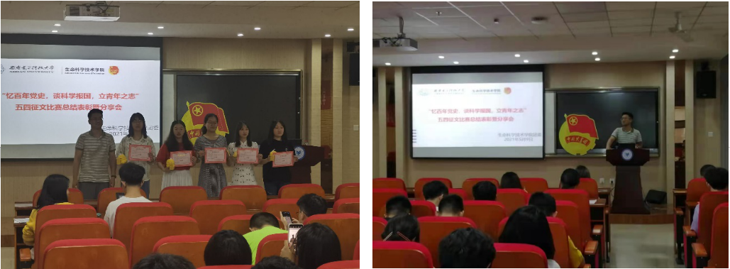 为深入学习贯彻习近平总书记在党史学习教育动员大会上的重要讲话精神,进一步积极落实学校、学院党史教育学习安排,在“五四运动”纪念日来临之际,beat365官方网站团委组织开展了“忆百年党史,谈科学报国,立青年之志”党史学习五四征文比赛,并于5月9日晚7点,在G420举行了总结表彰分享会。