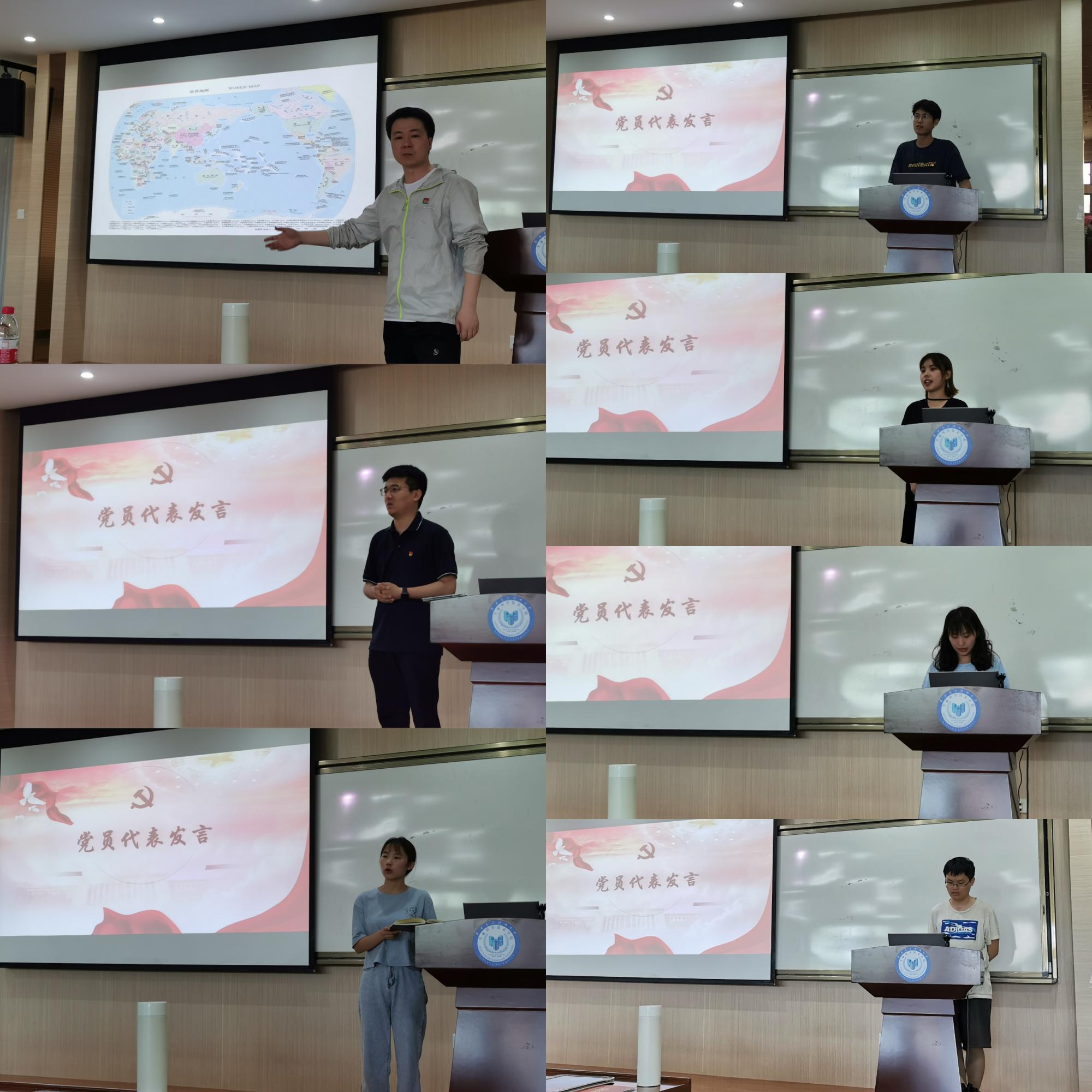 张毅、杨鹏、张婷三位过“政治生日”党员代表和毛伟、阮佳斌、陆雪婷、赵桃四位毕业生党员代表,围绕入党初心和毕业感想上台分享交流。教师代表张毅、杨鹏两位教师,围绕家国情怀、科研报国鼓励党员同志们要牢记身份,努力学习,听党话,跟党走,为社会多做贡献。学生党员代表们也从坚定理想信念、践行初心使命、立足工作岗位做表率等方面,结合自身经历和心得体会做了深刻而生动的分享。