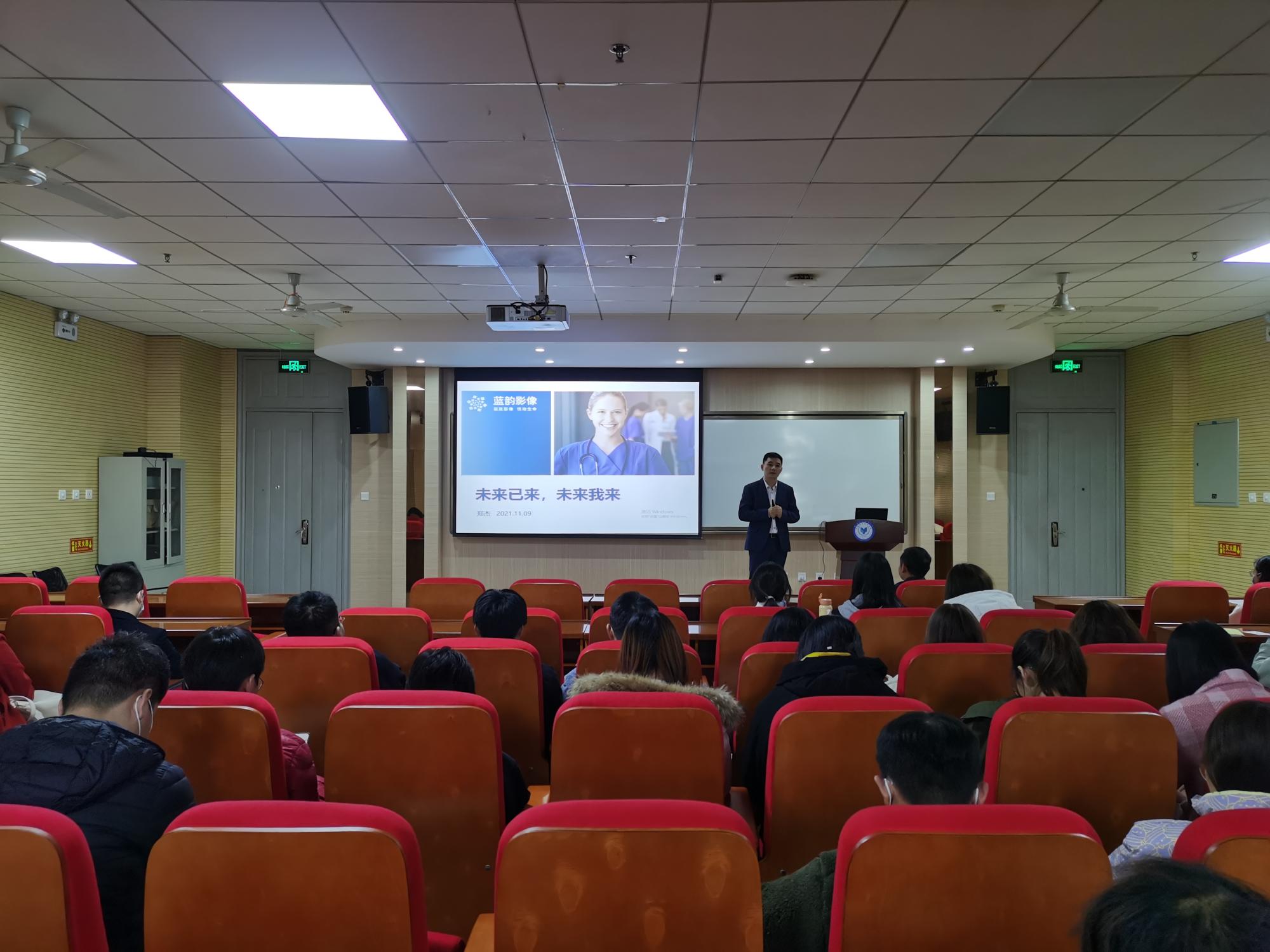 交流会结束后,蓝韵影像副总经理郑杰于G420报告厅给我院学生做了主题为“未来已来,未来我来”的分享报告。