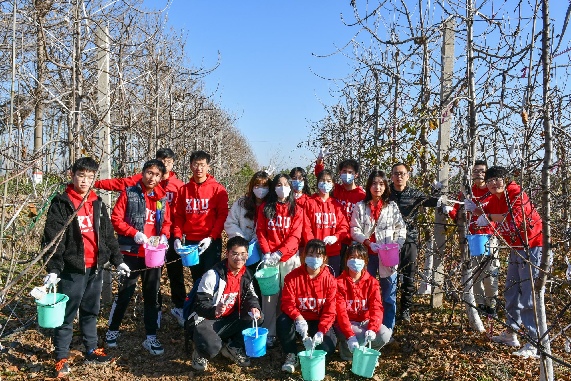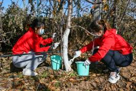 在劳动期间,大家严格按照张经理讲授的方法,分工协作,井然有序,开始为樱桃树的树干刷白。大家或交流心得,或分享技巧,埋头苦干下所有人都迎来了丰收的喜悦,现场一派热火朝天的劳动景象。