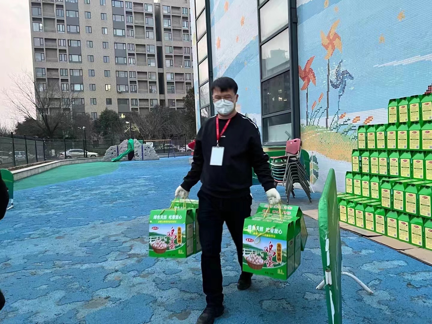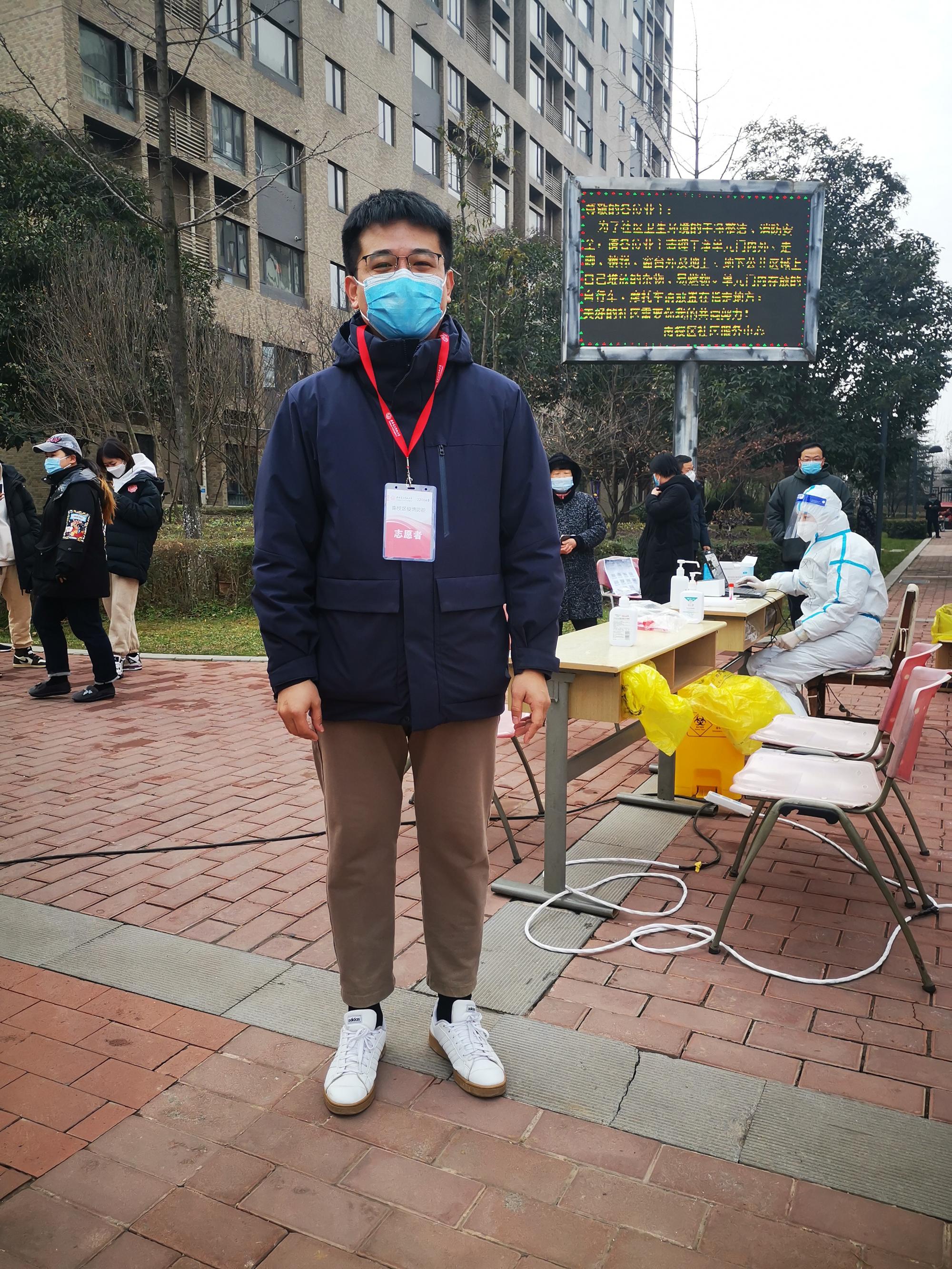 “为了给大家更好地服务,我积极参加各项活动,早上是核酸检测志愿者,中午是物资梳理志愿者,下午是物资发放志愿者。”12月29日以来,副院长李卫帮便主动加入到志愿者队伍中,在南校区家属区的各个工作点都能看到他忙碌的身影。孩子年纪小,妻子因为疫情在单位无法回家,李卫帮只能一边工作,一边用监控摄像头关注在家中的儿子,舍小家、为大家,体现党员干部的责任担当。“作为年轻党员干部,我牢记守土有责、守土尽责,我居住的地方就是我们温暖的家园,遇到困难应该挺身而出,共同守护家园。”