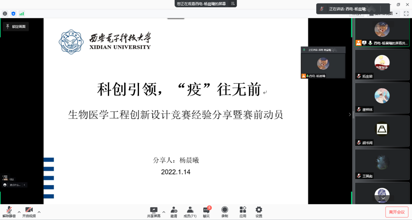 为丰富我院学子疫情期间的学习生活,提升同学们的科技创新能力。1月14日,生科院举办了“科创引领,‘疫’往无前”竞赛经验分享交流会,此次分享会邀请2021级博士生李蕾和2019级本科生杨晨曦主讲。
