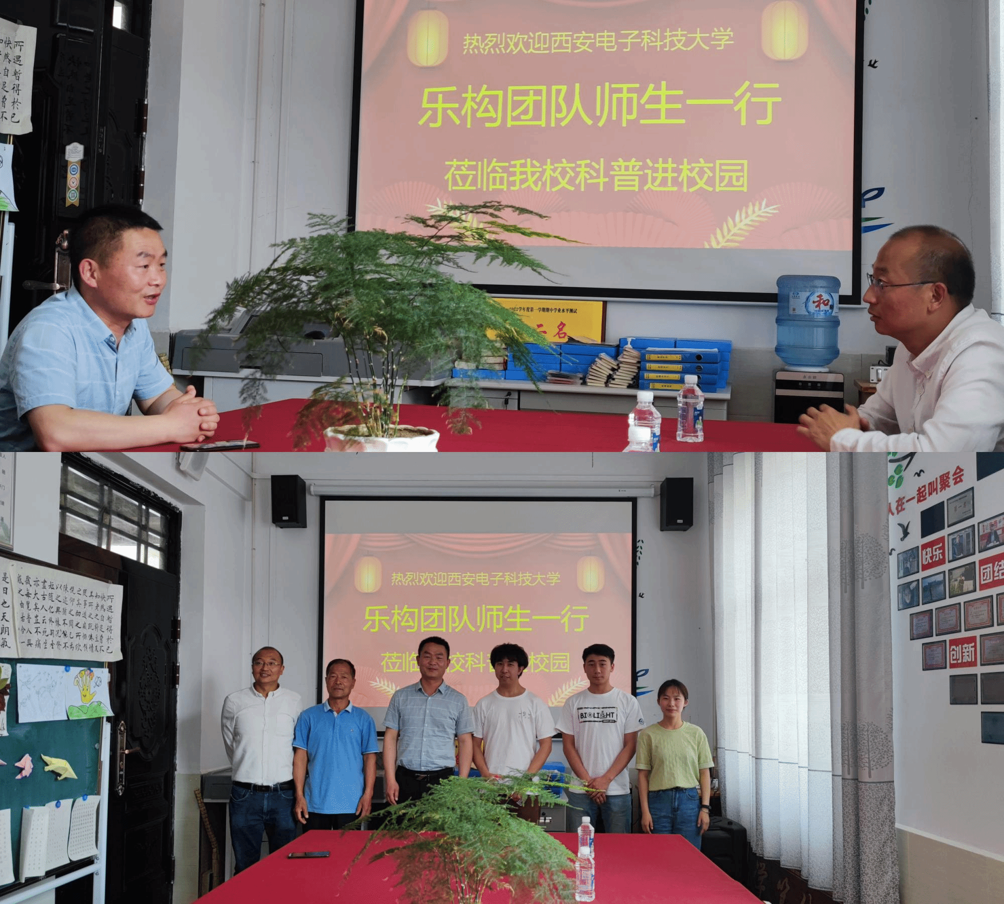 科普课堂结束后,校长王建强和乐构团队指导老师胡波教授在老堡子村小学会议室就如何开展远程科普课程展开了洽谈,希望利用在线课堂更加便捷地开展科普课程,丰富学校的科学活动,增强孩子们动手实践能力,将科学“生动化”、“形象化”,带给孩子不一样的体验,让孩子们在不知不觉中学到知识,促进孩子能力的全面提升。
