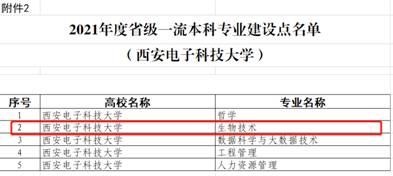 近日,教育部办公厅发布《关于公布2021年度国家级和省级一流本科专业建设点名单的通知》(教高厅函〔2022〕14号),beat365官方网站生物技术专业成功入选2021年度陕西省级一流本科专业建设点。这是继生物医学工程专业获批2020年度国家级一流本科专业建设点之后,学院在一流本科专业建设方面取得的又一成绩。