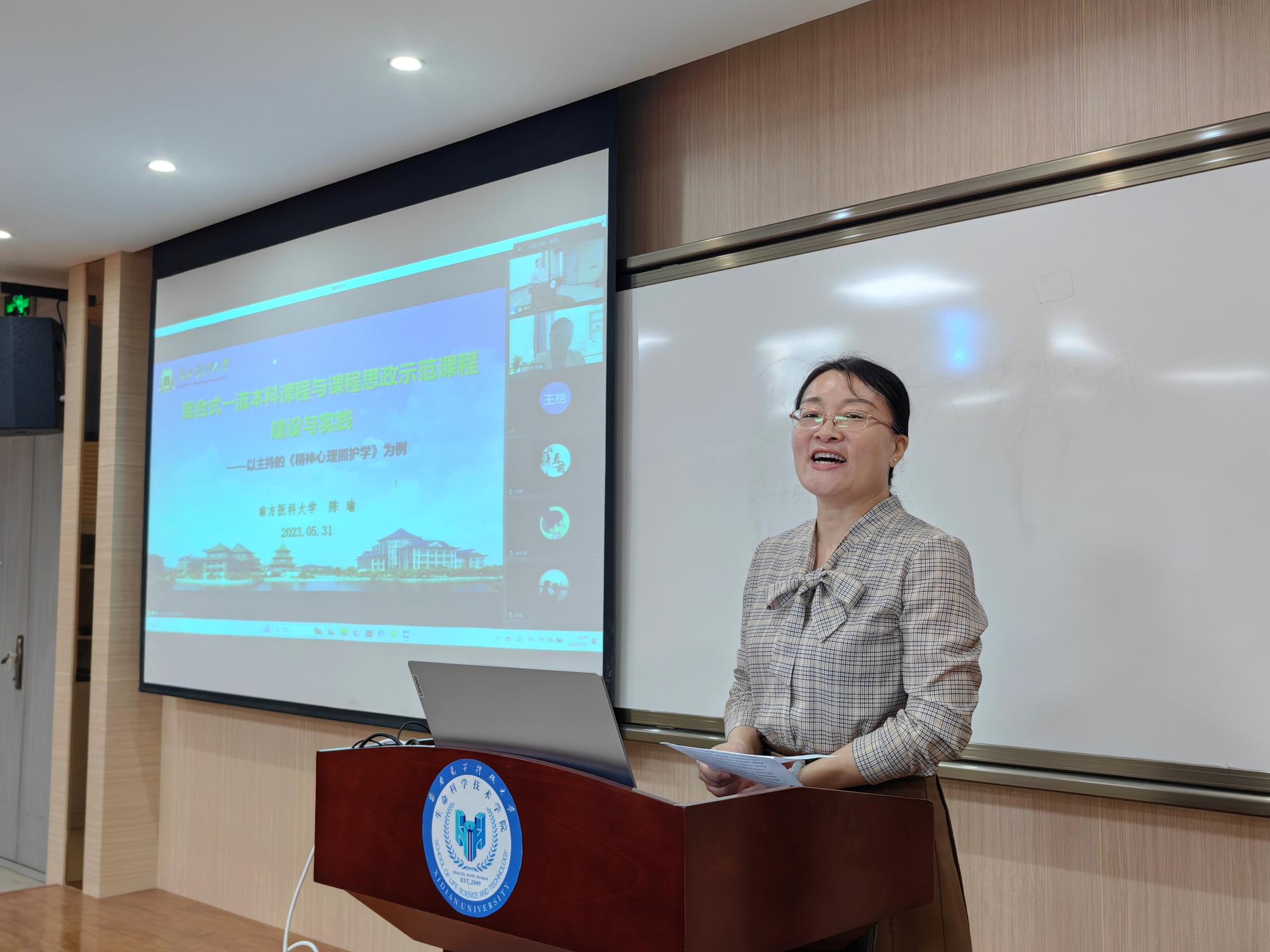 为深入学习贯彻党的二十大精神,深化教育教学改革,全面推进课程思政建设,落实立德树人根本任务,结合近期学校主题教育工作及本科教育教学审核评估、本科生和研究生课程教学大纲修订工作,5月31日下午,beat365官方网站特邀请南方医科大学陈瑜教授为学校教师作题为“混合式一流本科课程与课程思政示范课程建设与实践”的专题培训,培训线上线下同步开展。此次培训由学院谢晖教授主持,学院党委书记王丽玲、教学院长朱守平及学院各系教师参加了此次培训。