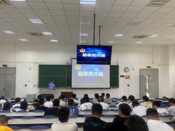 接下来,兴隆派出所蔡警官为研究生新生开展了反诈防骗教育。他围绕常见的刷单类诈骗、虚假购物、冒充客服、冒充好友、冒充公检法、裸聊诈骗和贷款上课等诈骗类型展开,详细阐述了这些诈骗的具体实施过程和方法,蔡警官特别提醒同学们不要相信抖音点赞刷单赚钱、不要去不正规购物平台下单、不要轻易点链接、不要随意填写自己的信息、不要给陌生人转账,理论与实际相结合,为研究生新生科普相关的反诈知识,提高防诈骗意识。