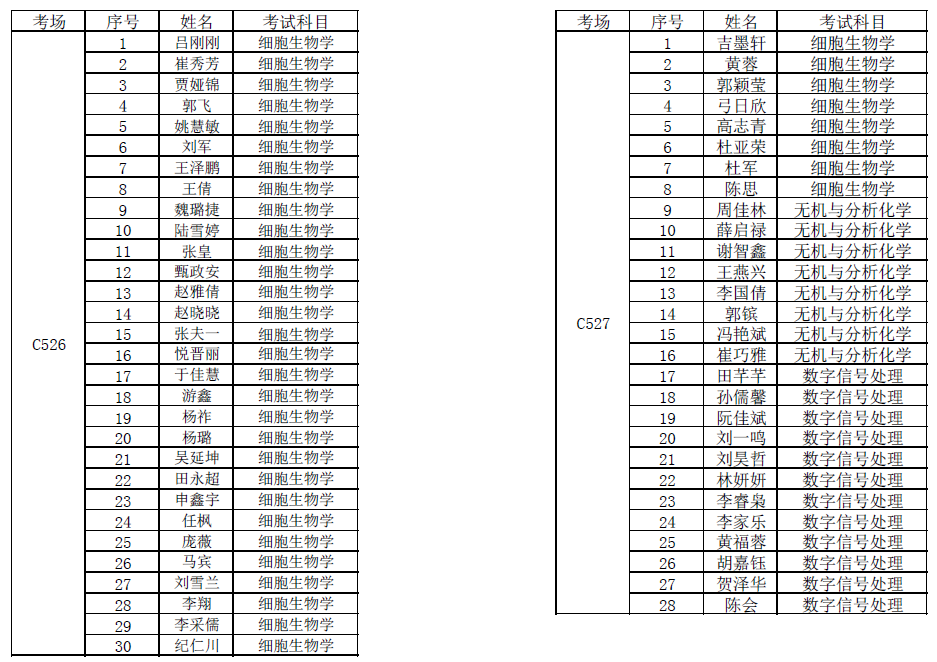 考试地点:C526~C529