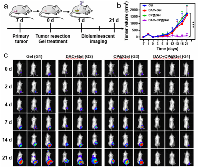 图2 DAC+CP@Gel在4T1肿瘤切除模型中有效抑制肿瘤复发