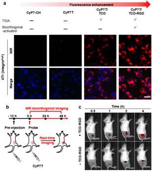 细胞及荷瘤小鼠的生物正交靶向激活高灵敏成像