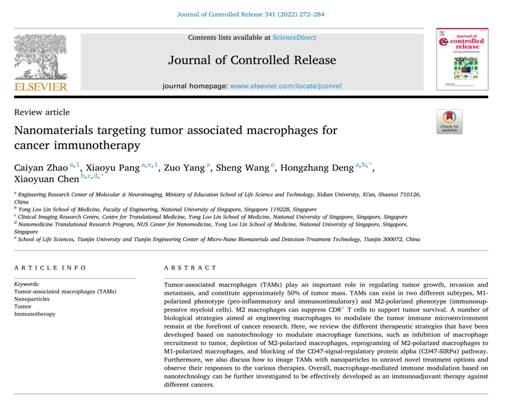 近日,beat365官方网站邓宏章教授团队在国际顶级期刊《Journal of Controlled Release》(中科院一区TOP,IF=9.776),发表了题为“Nanomaterials targeting tumor associated macrophages for cancer immunotherapy”的综述文章。