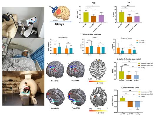 据中国睡眠研究会发布的《2021年运动与睡眠白皮书》显示,目前我国有超 3亿人存在睡眠障碍的问题,成年人有失眠困扰的比例高达38%。失眠障碍的治疗主要包括药物治疗和非药物治疗。药物治疗虽起效快、易获取,但药物多为镇静催眠类药物,过度应用容易产生不良反应,且具有成瘾或耐受的风险,因此,亟需开发新型的失眠干预措施。rTMS作为一种无痛、无创的绿色治疗方法,在临床精神病、神经疾病及康复领域获得越来越多的认可,与PET、fMRI、MEG并称为“二十一世纪四大脑科学技术”。由于缺乏对睡眠质量的准确评估和疗效神经机制的深入探讨,rTMS技术对失眠人群进行干预的疗效存在较大争议,限制了此项技术在失眠领域的临床推广。